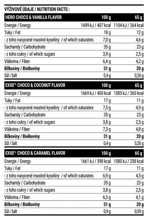 Többé nem kell választanod az íz és a nagy mennyiségű fehérje között! Kóstold meg HERO többrétegű fehérjeszeleteinket 31% fehérjével.